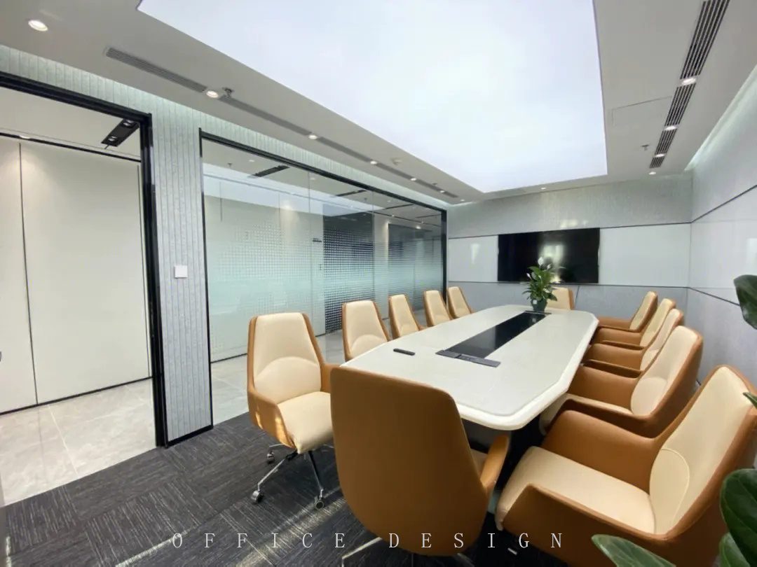 会议室是重点区域。一张大的椭圆形会议桌,能坐下十几个人,方便大家讨论问题。墙面可以安装一块智能白板,能随时写写画画,分享想法。再配上一套先进的视频会议设备,方便和外地的同事沟通。